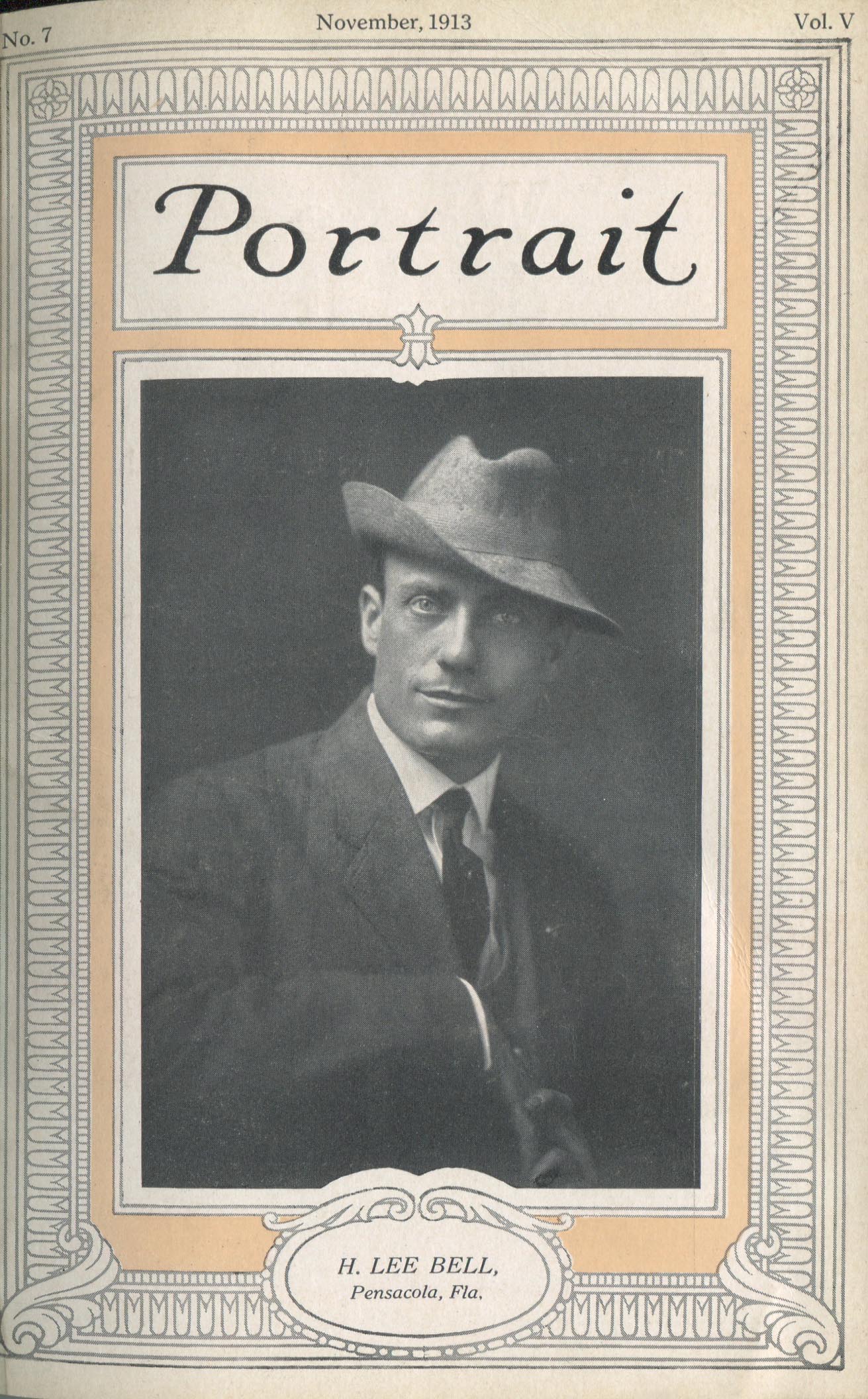 Bell, H. Lee. Pensacola FL – November 1913 Cover Profile and portrait of girl