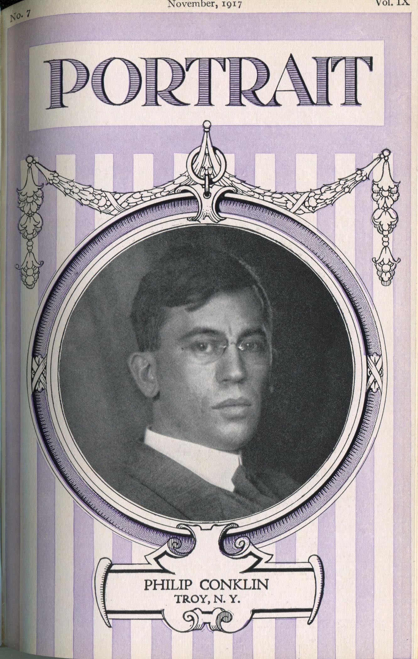 Conklin, Philip. Troy NY – November 1917 Cover Profile and portrait of woman
