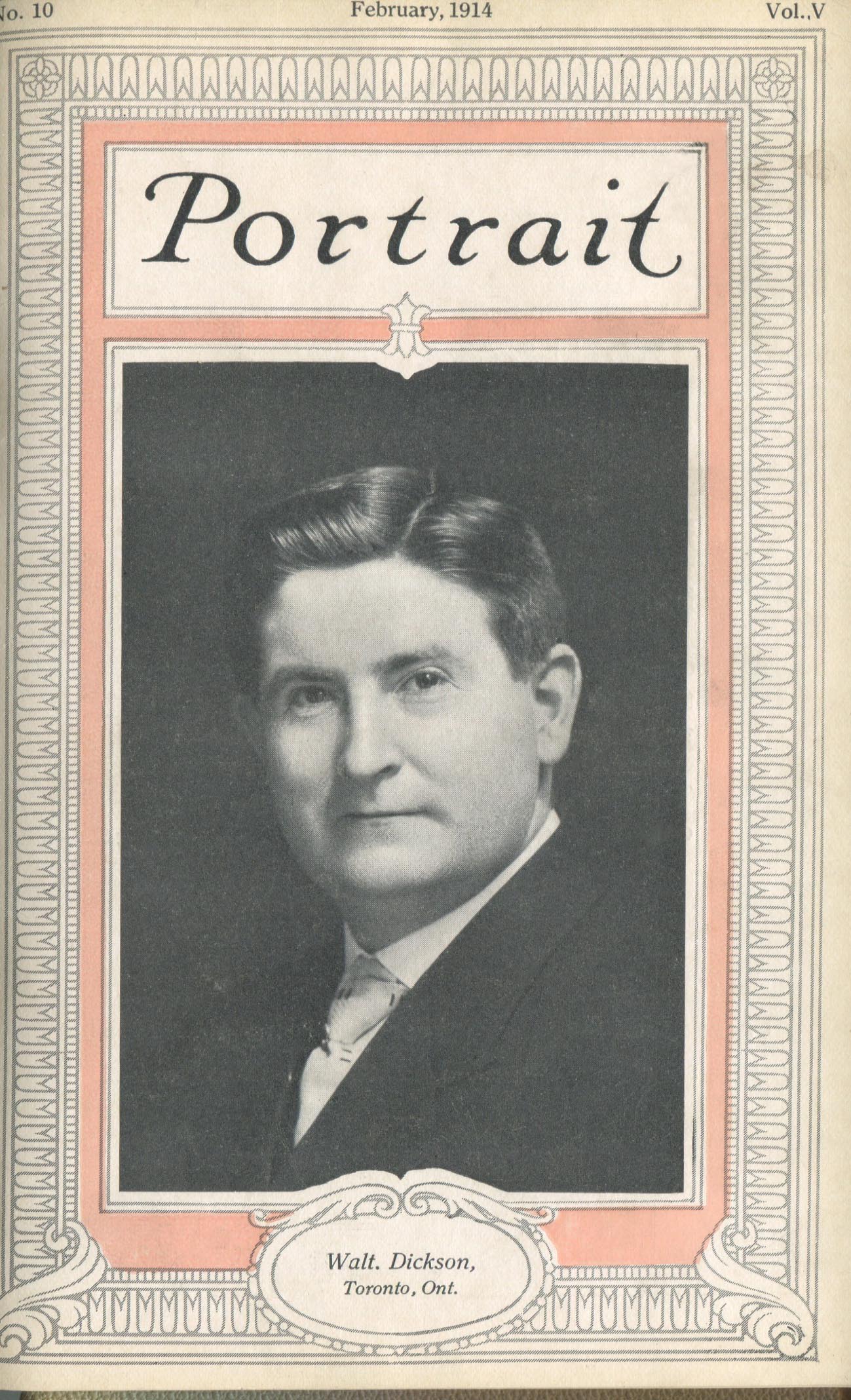 Dickson, Walt. Toronto ON – February 1914 Cover Profile and portrait of child