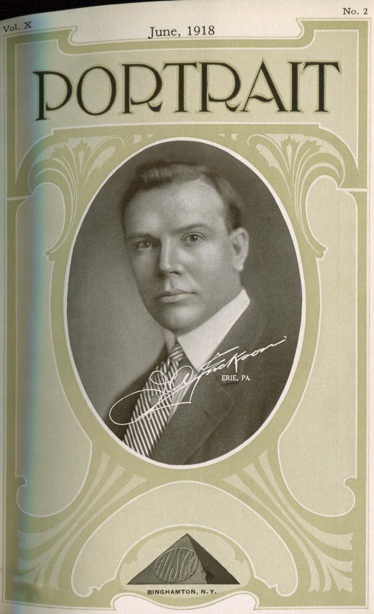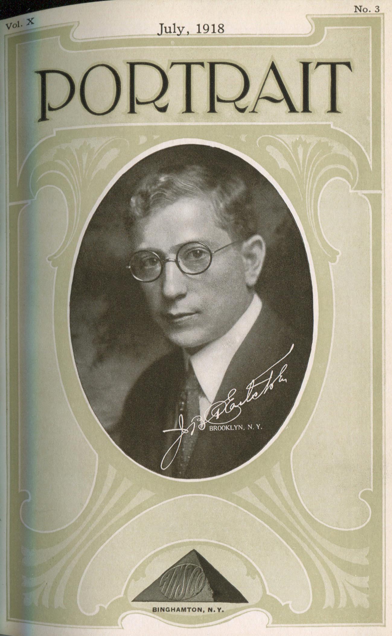 Disinger (Foster) & Adams (Ralph D.). Binghamton NY – January 1918 Cover Profile and portrait by Adams Portrait by Disinger
