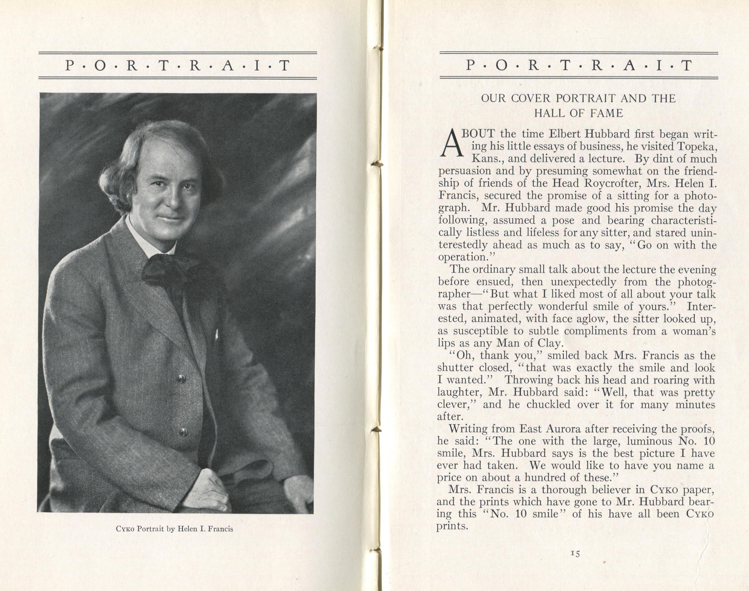 Francis, Helen I. Topeka KS – January 1915 Cover Profile and portrait of Elbert Hubbard