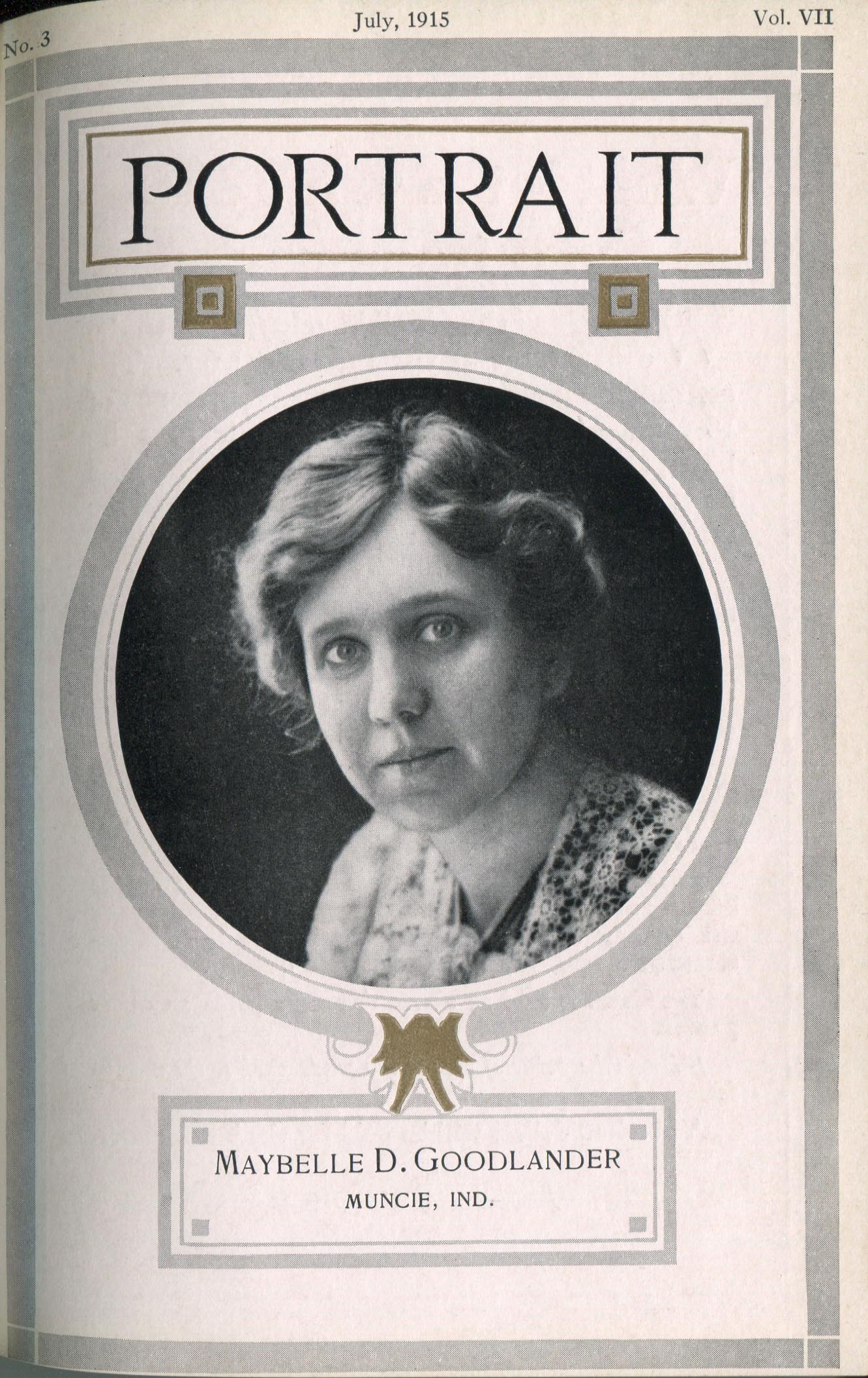 Goodlander Sisters. Muncie IN – July 1915 Cover Profile and portrait of woman