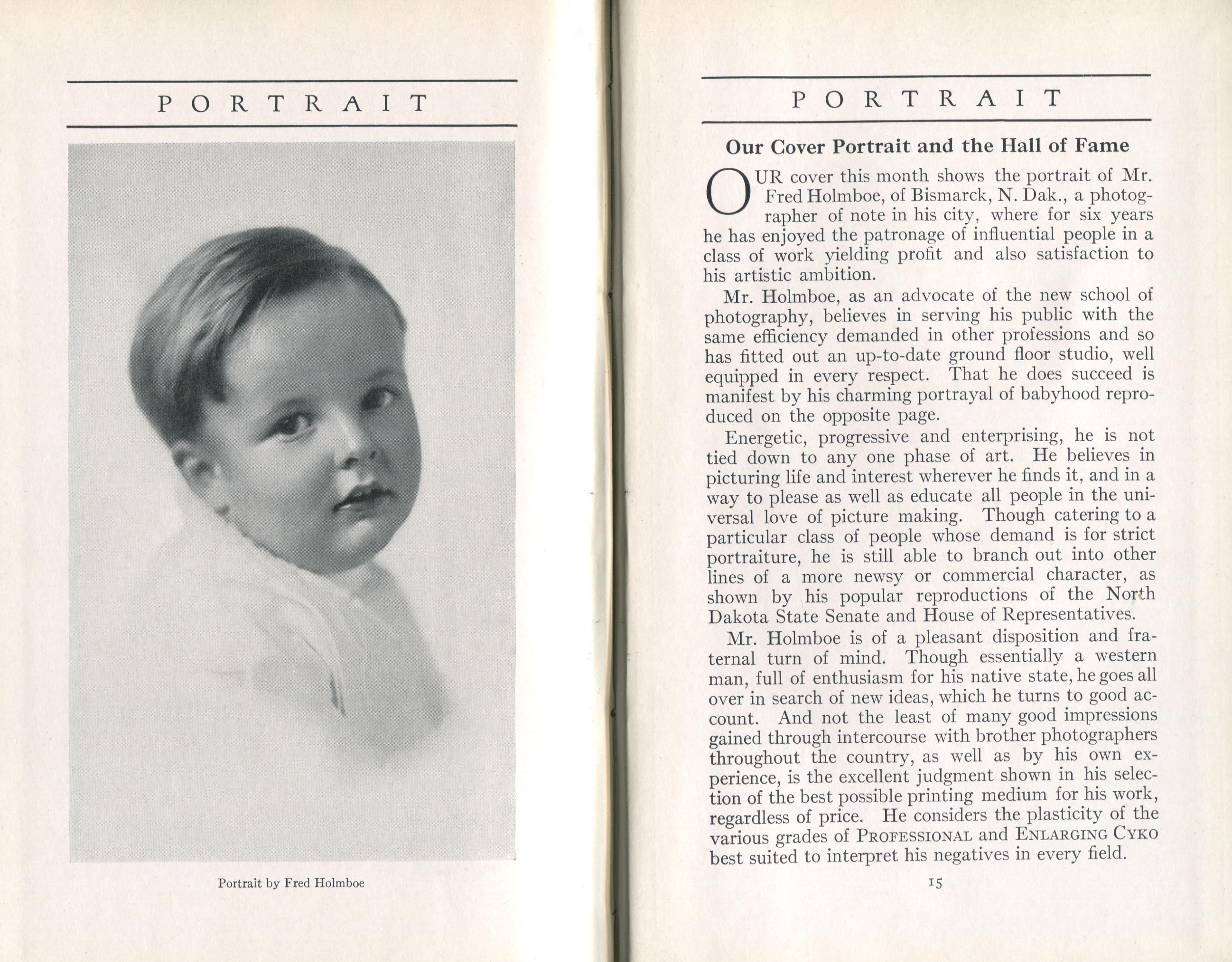 Holmboe, Fred. Bismarck ND – April 1916 Cover Profile and Holmboe portrait of child