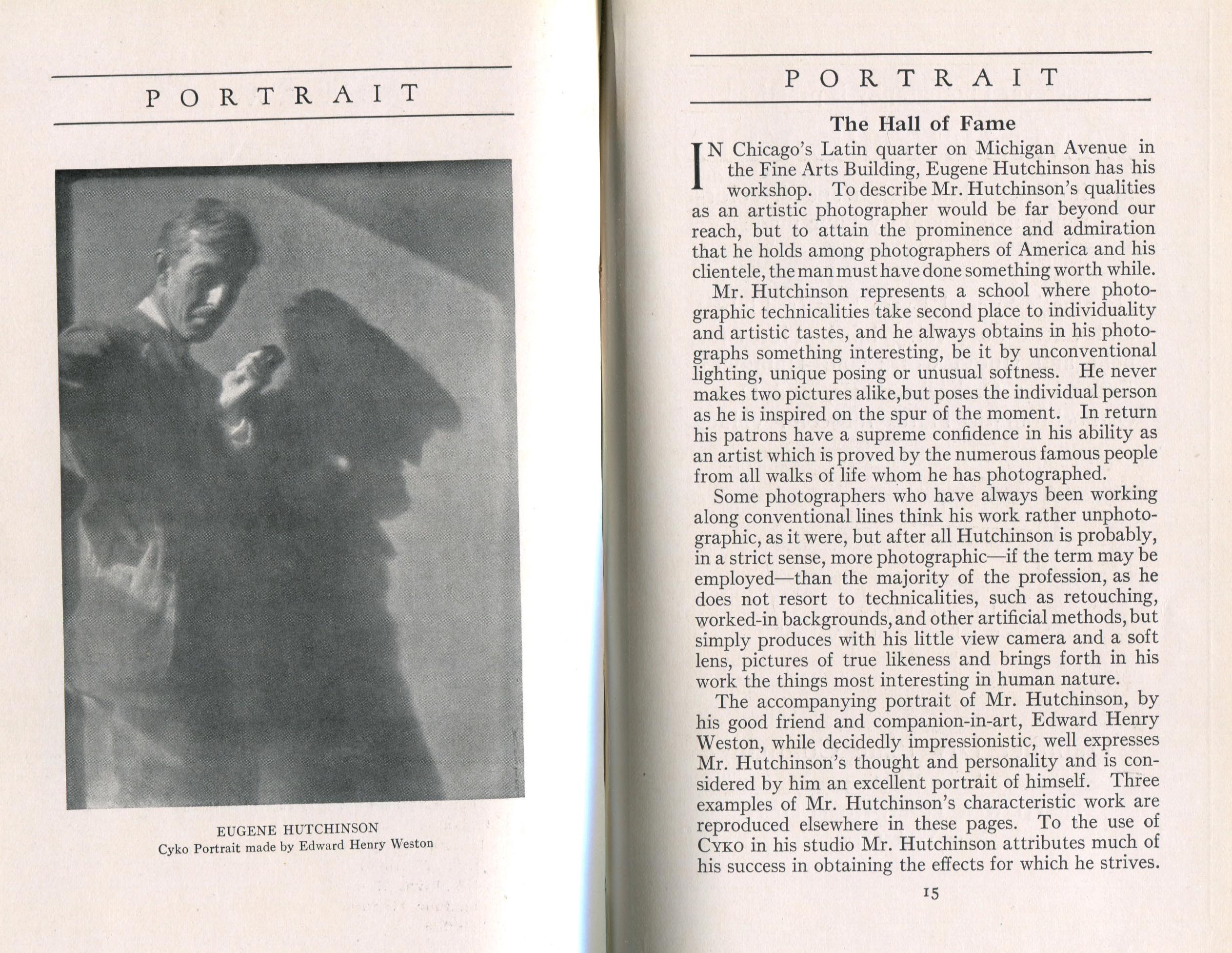 Hutchinson, Eugene. Chicago IL – August 1917 Cover Profile and portrait of Hutchinson by Weston Two portraits by Hutchinson