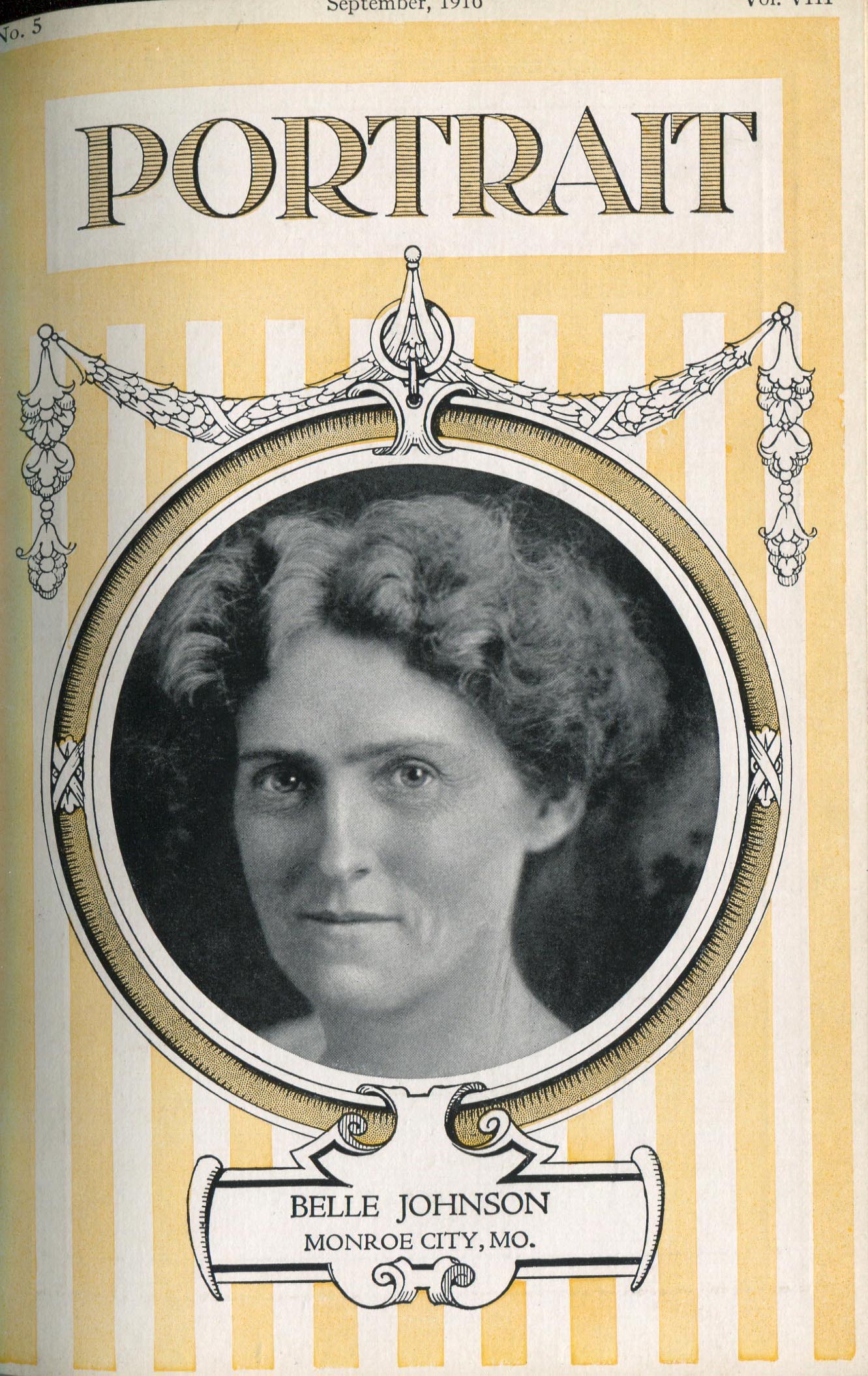 Johnson, Belle. Monroe City MO – September 1916 Cover Profile and group portrait of six girls