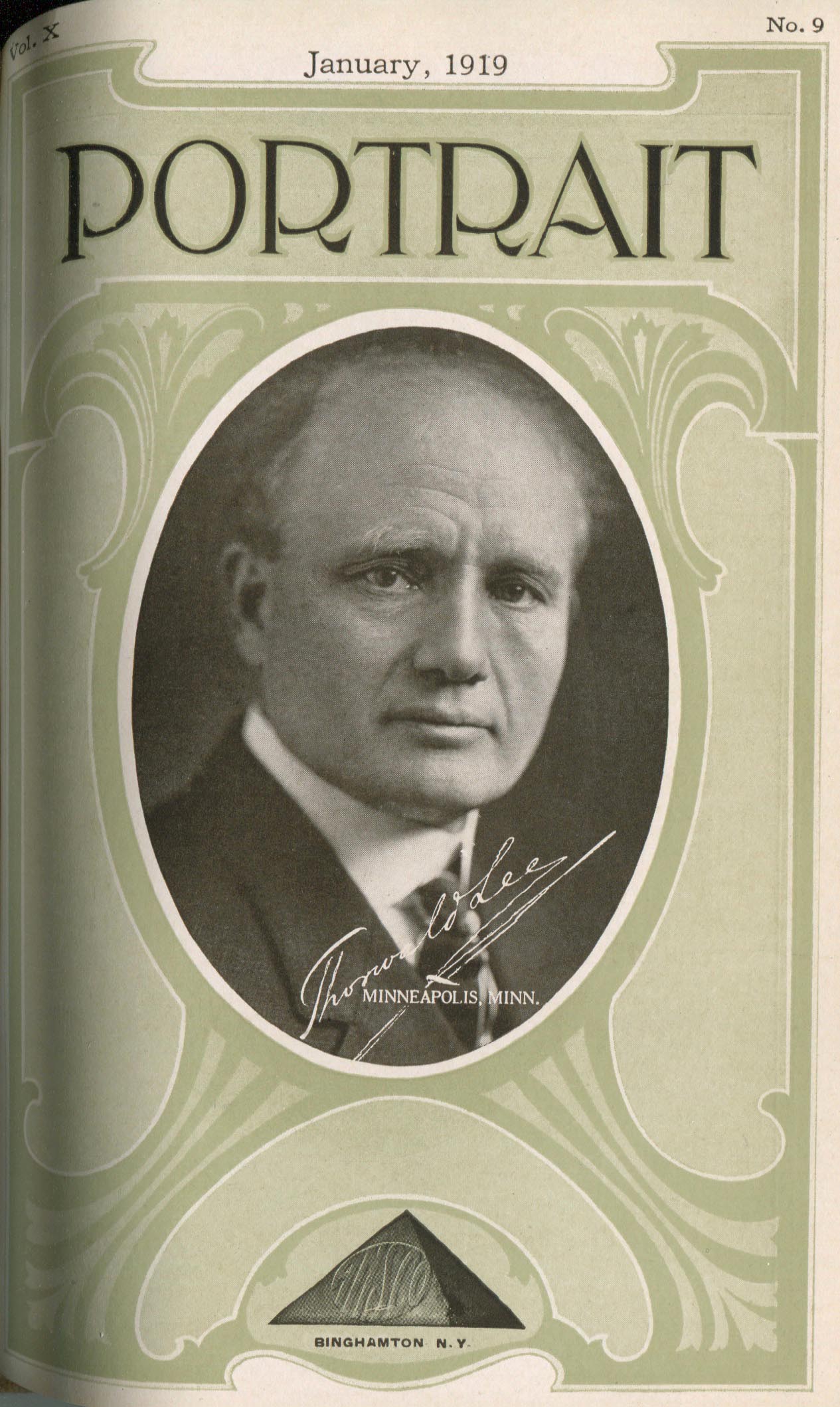 Lee, Thorwald (Lee Brothers). Minneapolis MN – January 1919 Cover Profile and portrait of woman