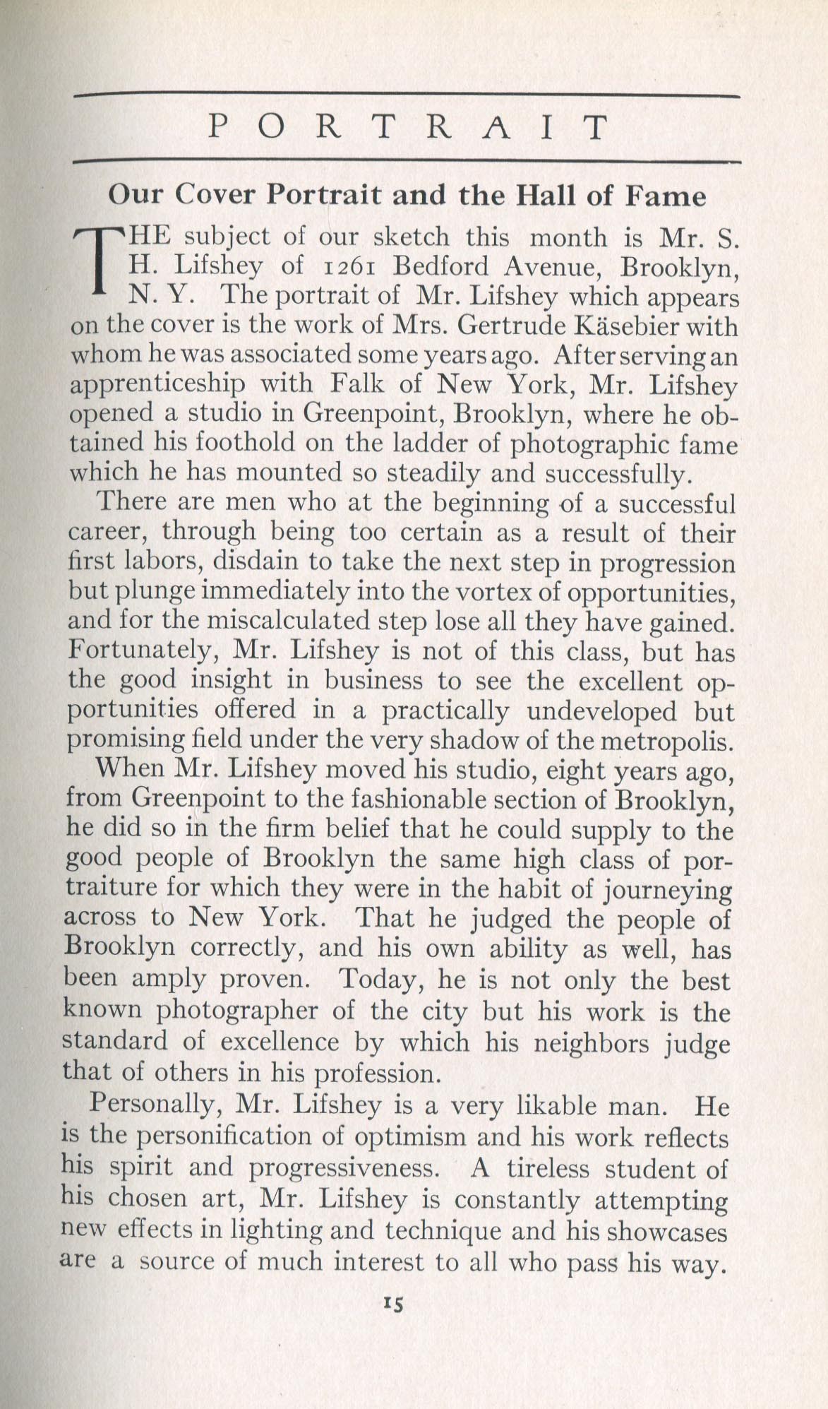 Lifshey, S.H. Brooklyn NY – June 1916 Cover (Lifshey by Käsebier) Profile
