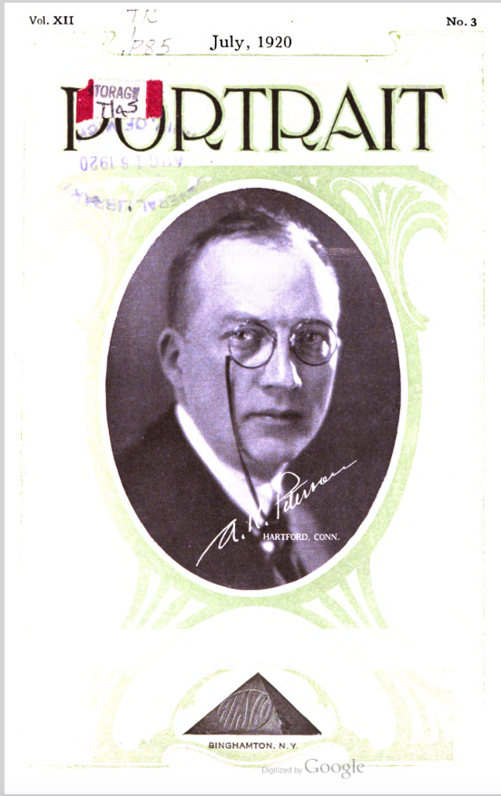 Peterson, A.K. Hartford CT – July 1920 Cover Portrait of man