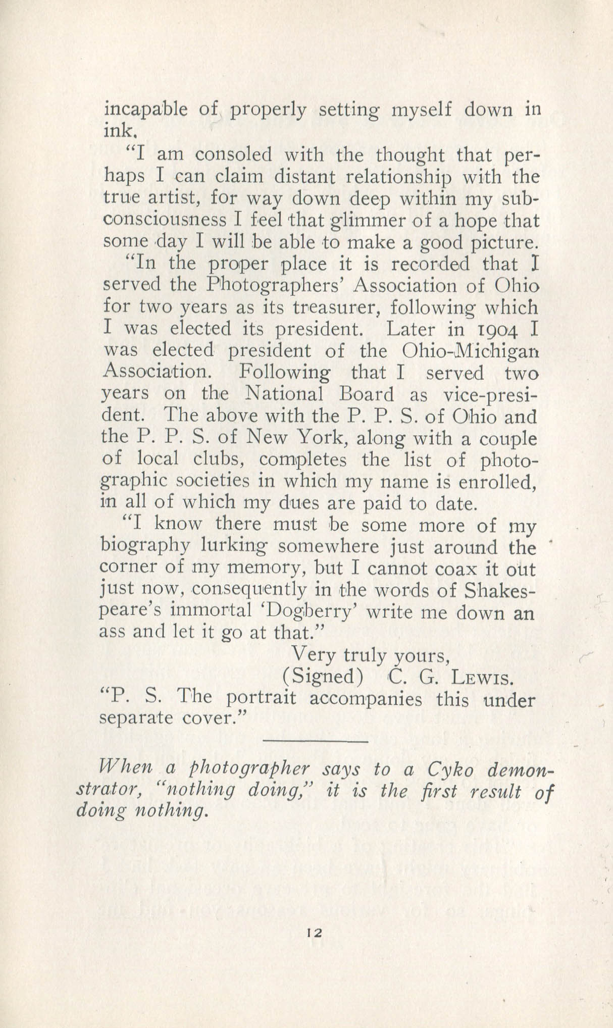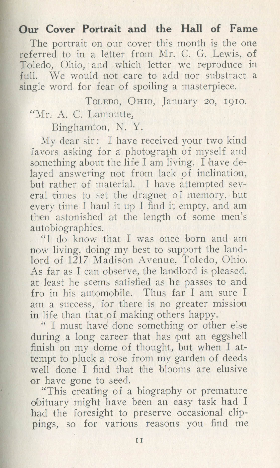 Lewis, C.G. Toledo OH – May 1910 Cover Profile Profile, continued