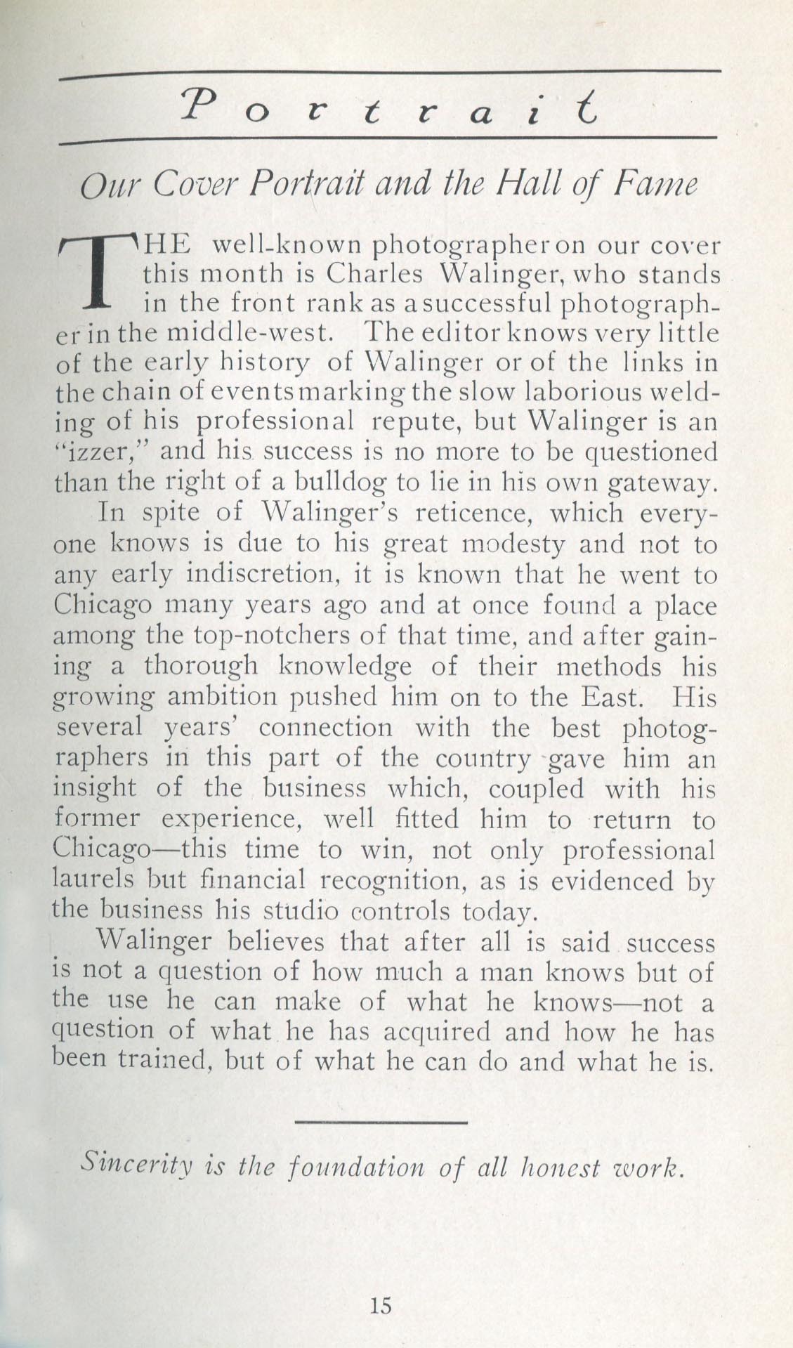 Walinger, Charles. Chicago IL – May 1911 Cover Profile