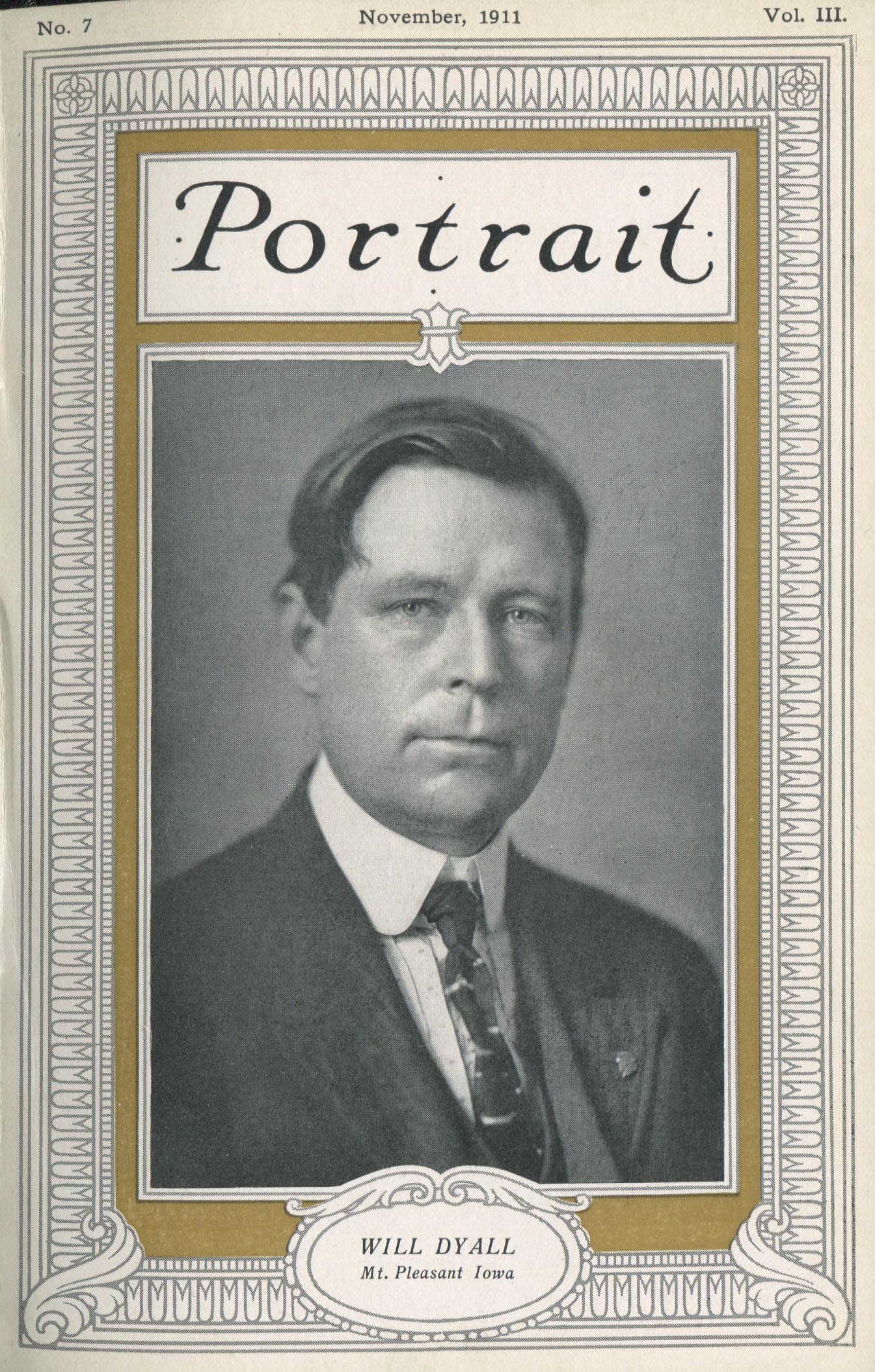 Dyall, Will. Mt. Pleasant IA – November 1911 Cover Profile Dyall portrait of woman