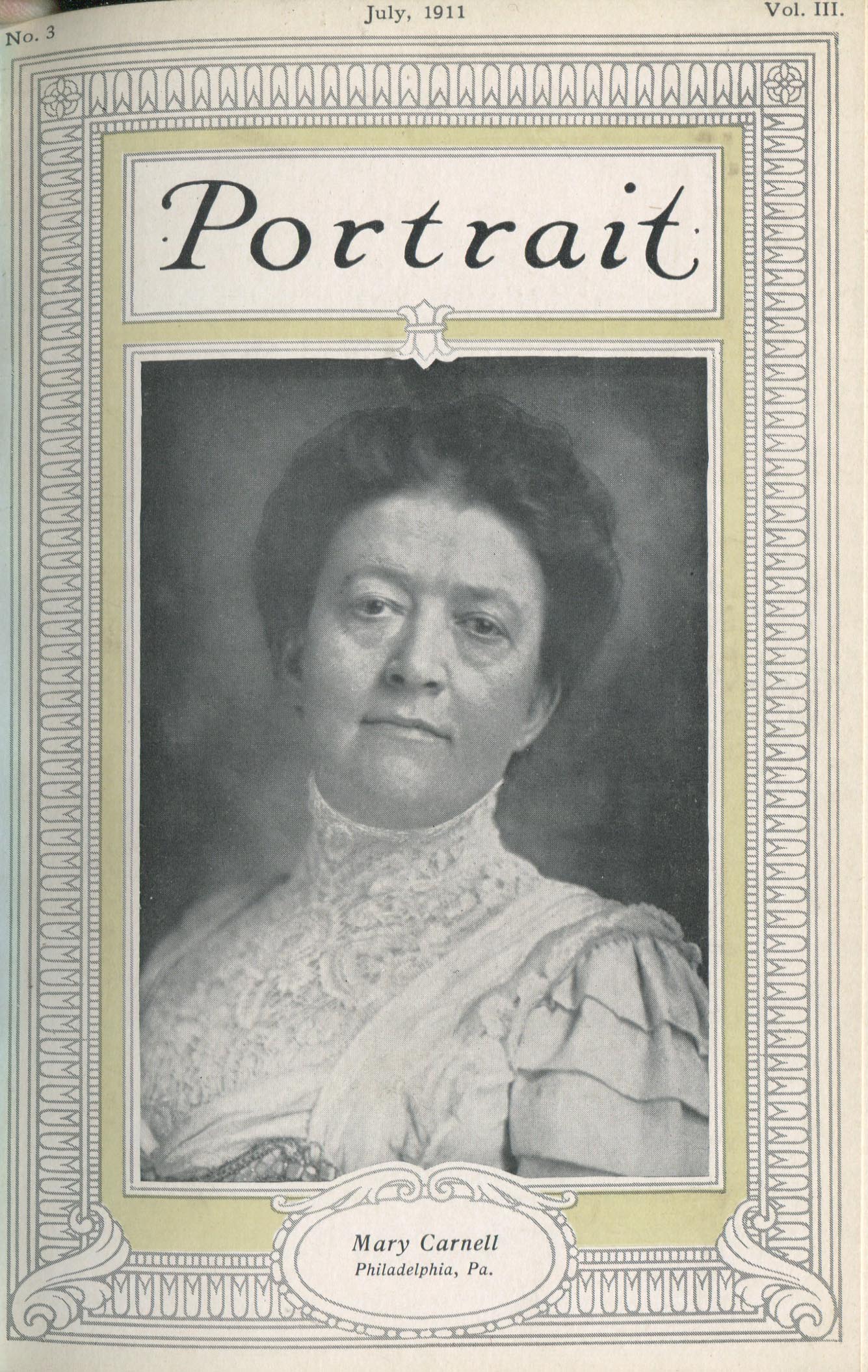 Carnell, Mary. Philadelphia PA – July 1911 Cover Profile