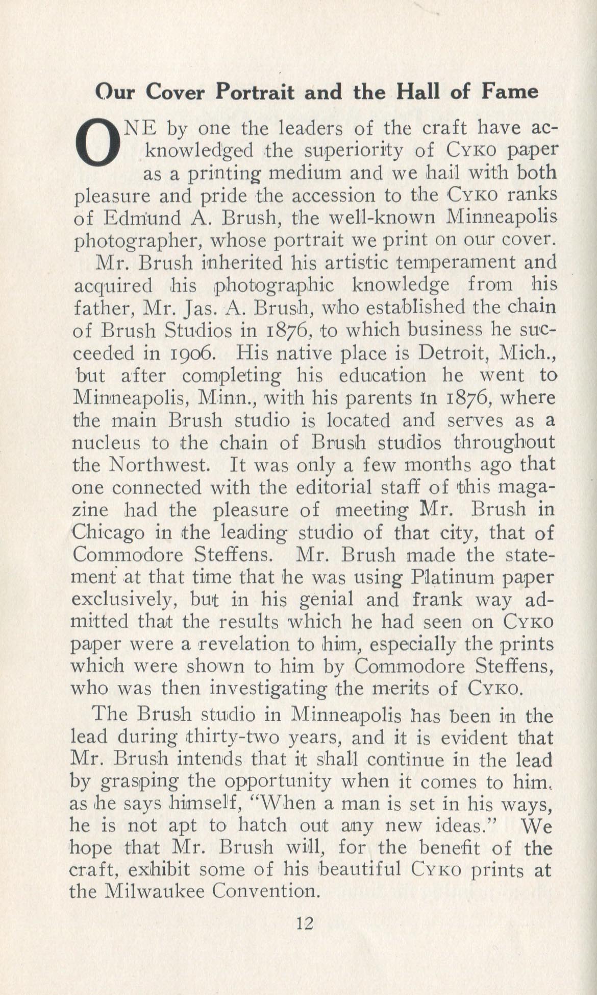 Brush, Edmund A. Minneapolis MN – July 1910 Cover Profile