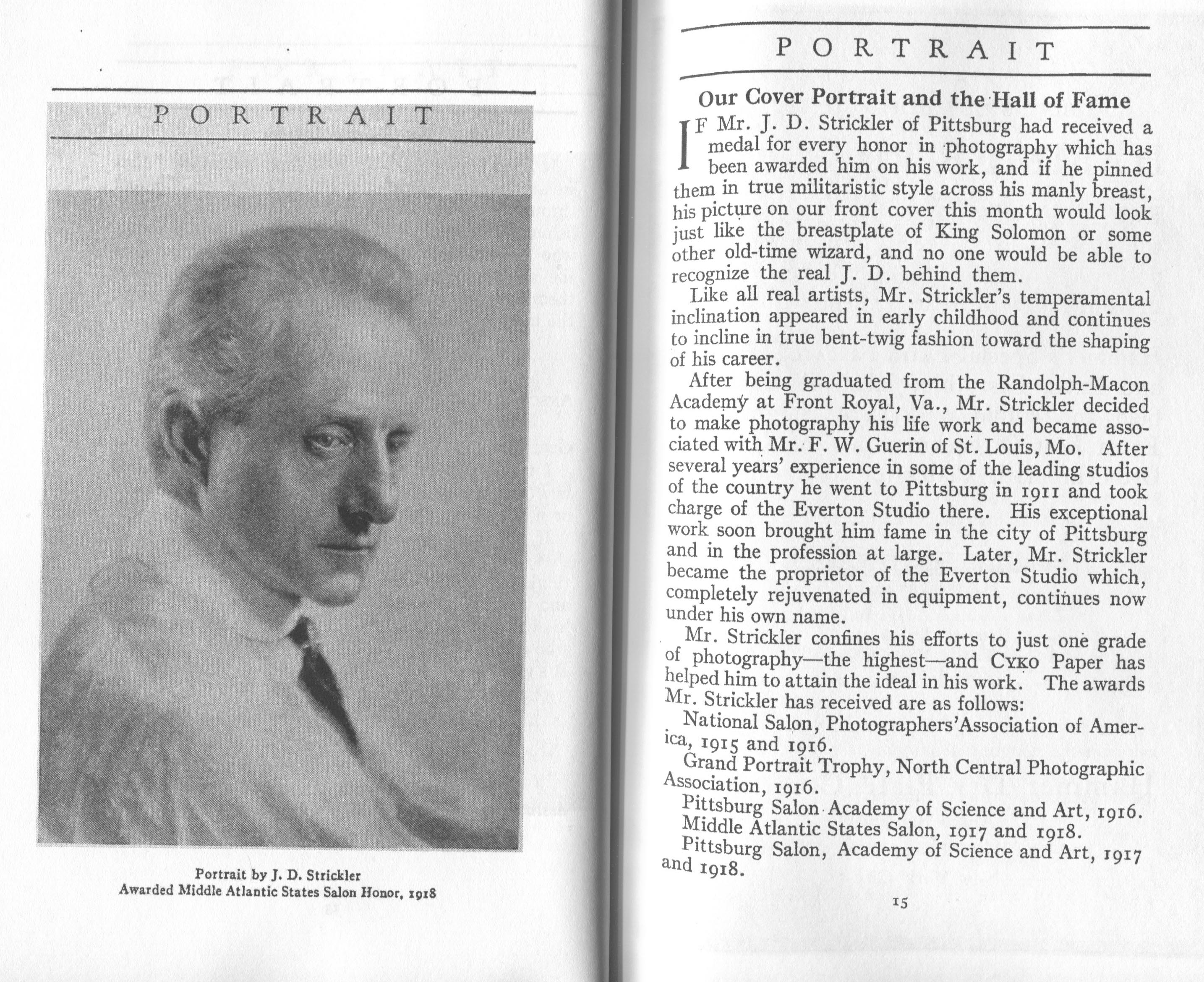 Strickler, J.D. Pittsburgh PA – May 1918 Cover Profile and portrait of man Strickler portrait of girl
