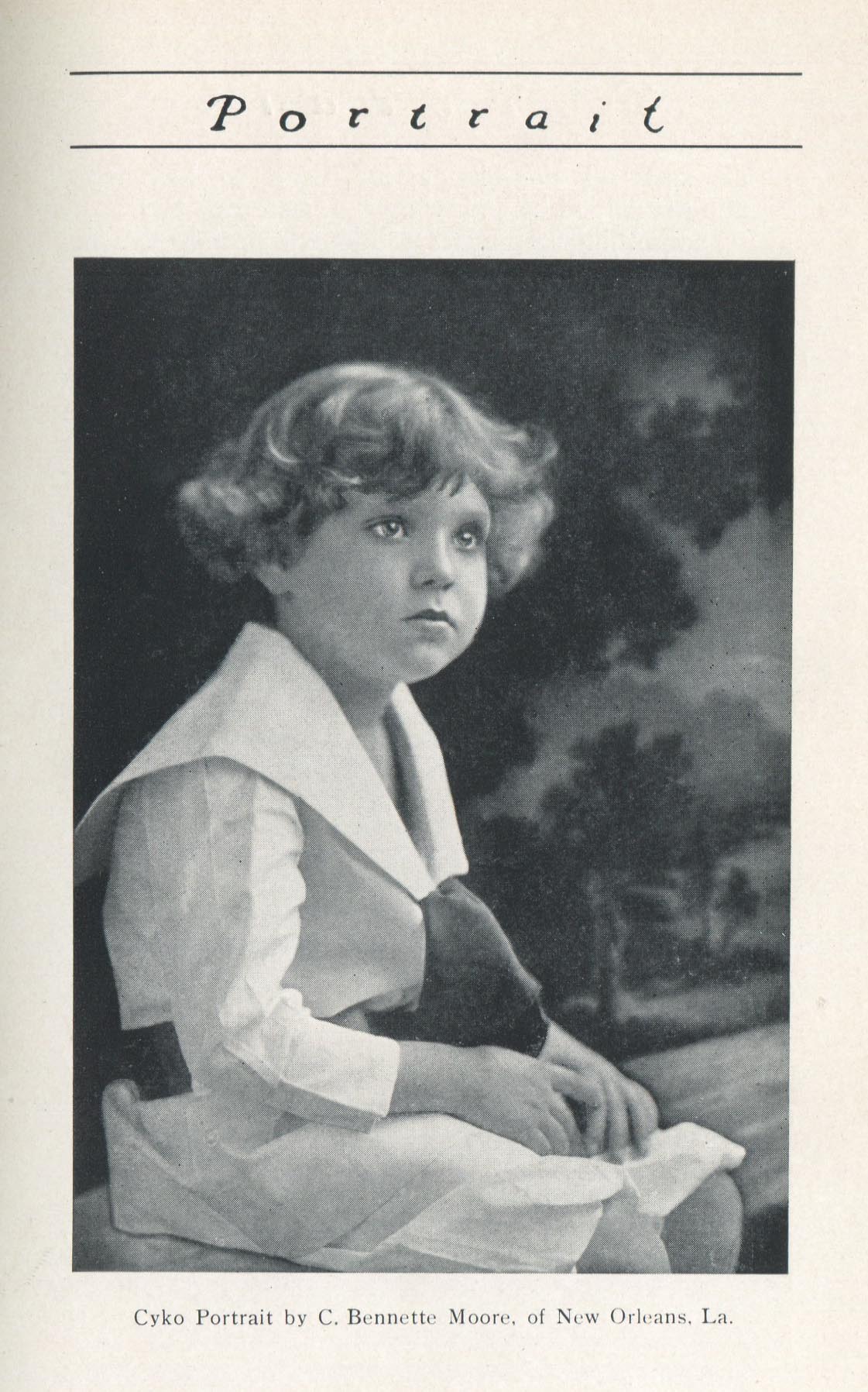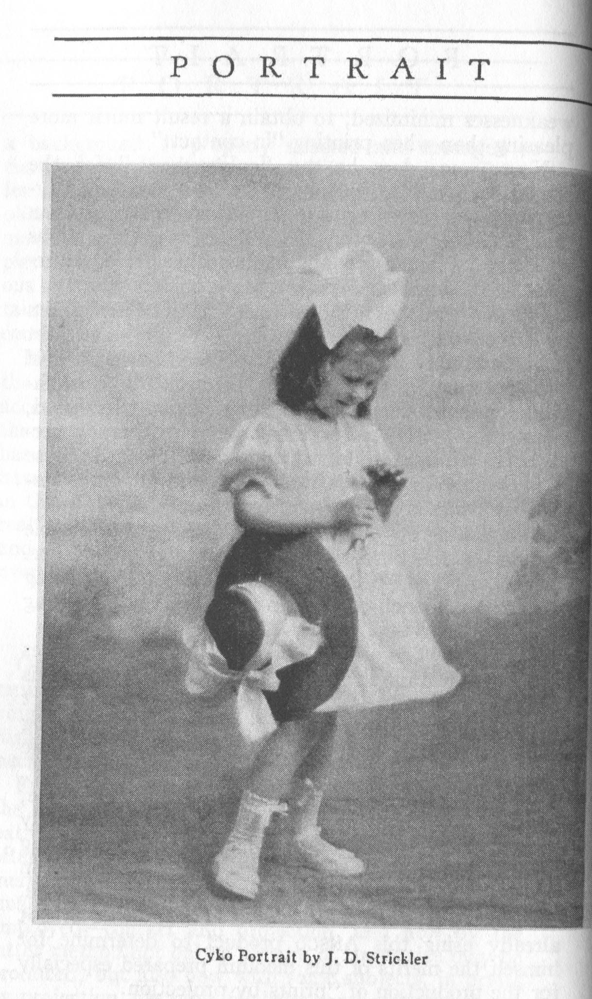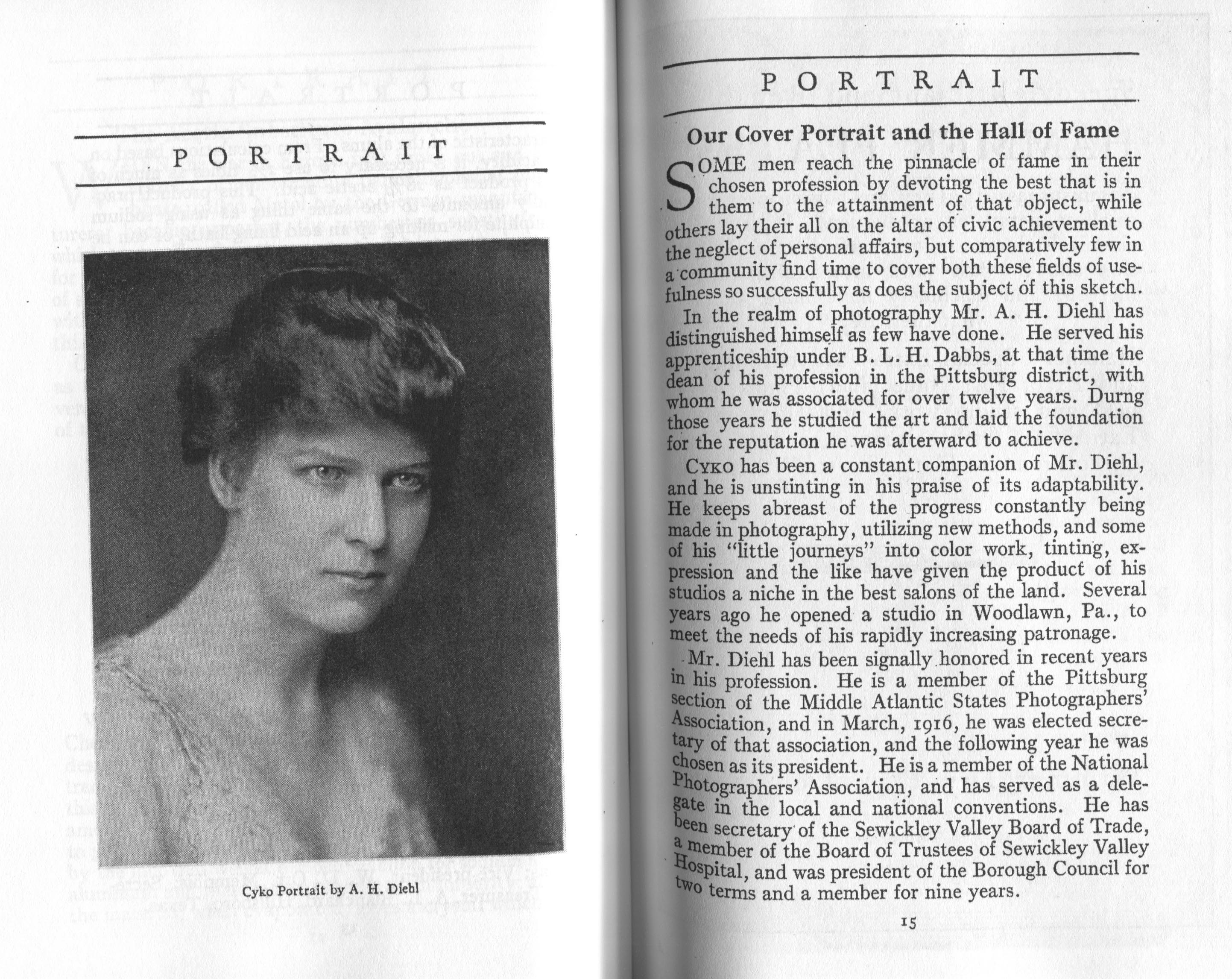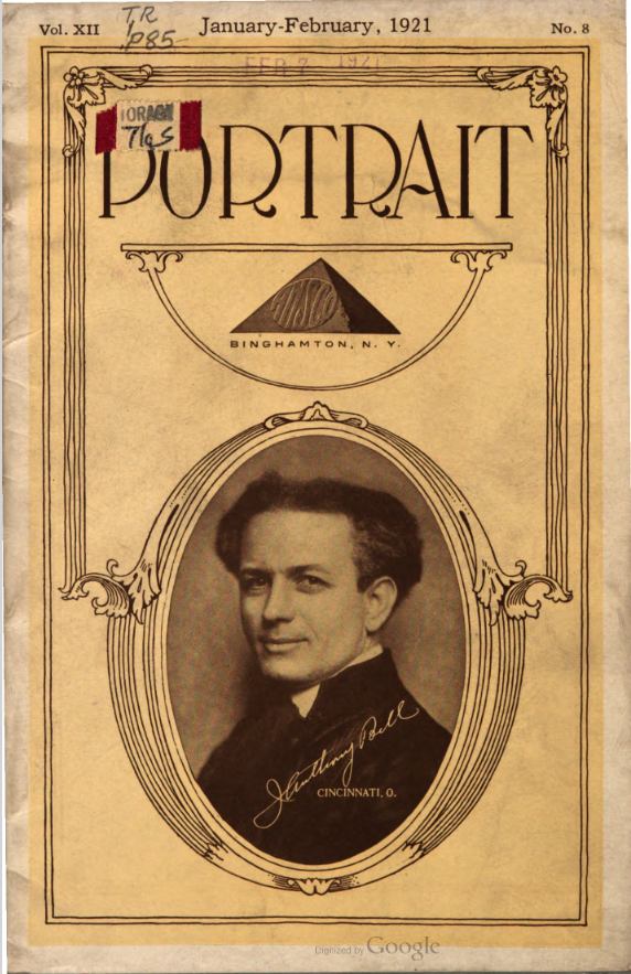 According to its masthead, Portrait, a monthly journal published by the ANSCO Company in Binghamton, New York, from 1909 to 1921, was "a magazine devoted to art-in-portraiture, also profit-in-photography and committed to a `square deal.'" Portrait coincided with the golden age of commercial portraiture, when the influence of amateur art photography combined with market demand to encourage the development of studios where individuals could obtain portraits that went well beyond mere likenesses. In keeping with the artistic aspirations of these photographers, such portraits were printed using controlled processes such as gum bichromate or on commercially available papers, such as ANSCO’s Cyko, for which several variants, including a `linen' surface, was available. Cyko, especially when toned, could resemble gum or platinum prints and was much faster to process.