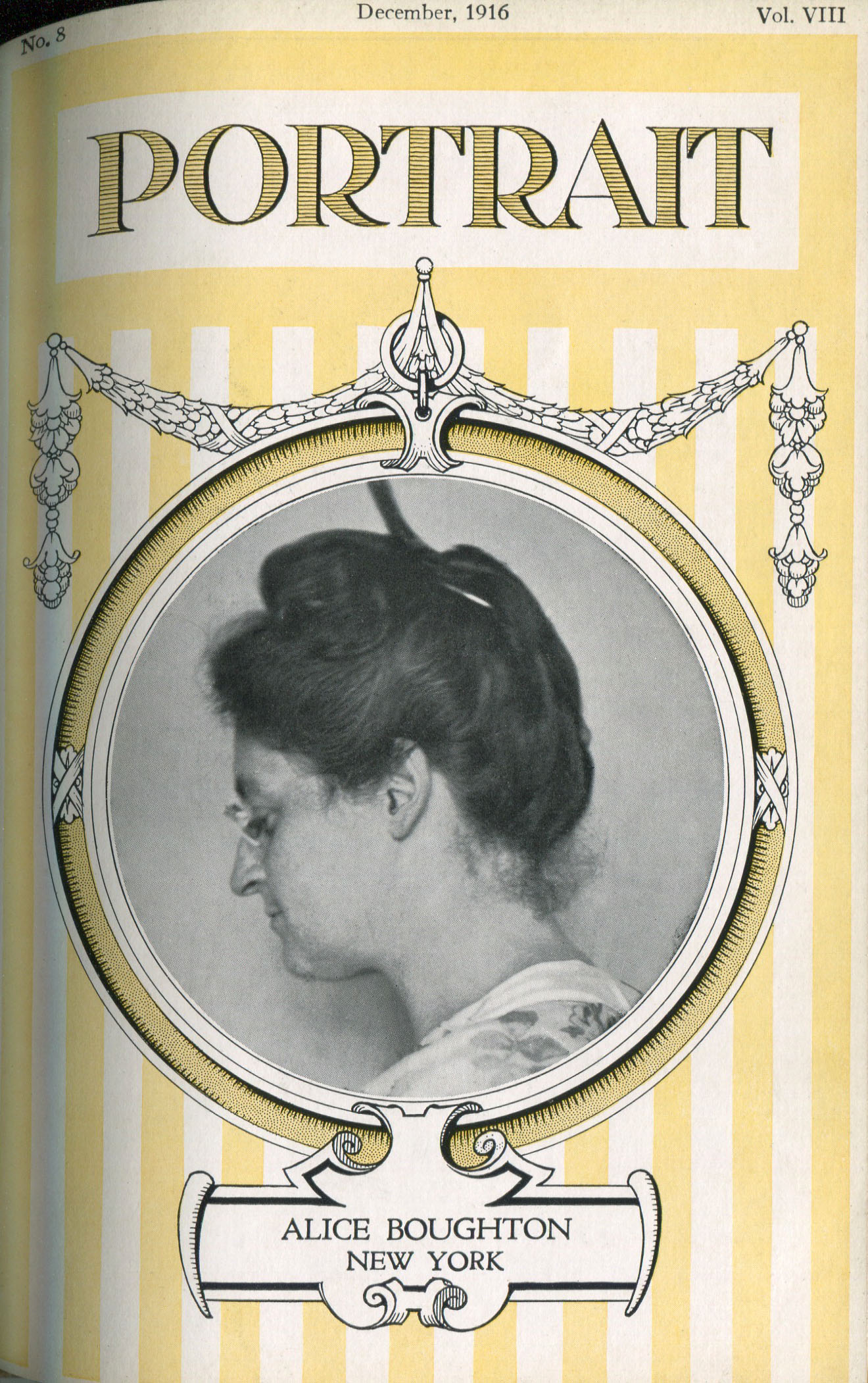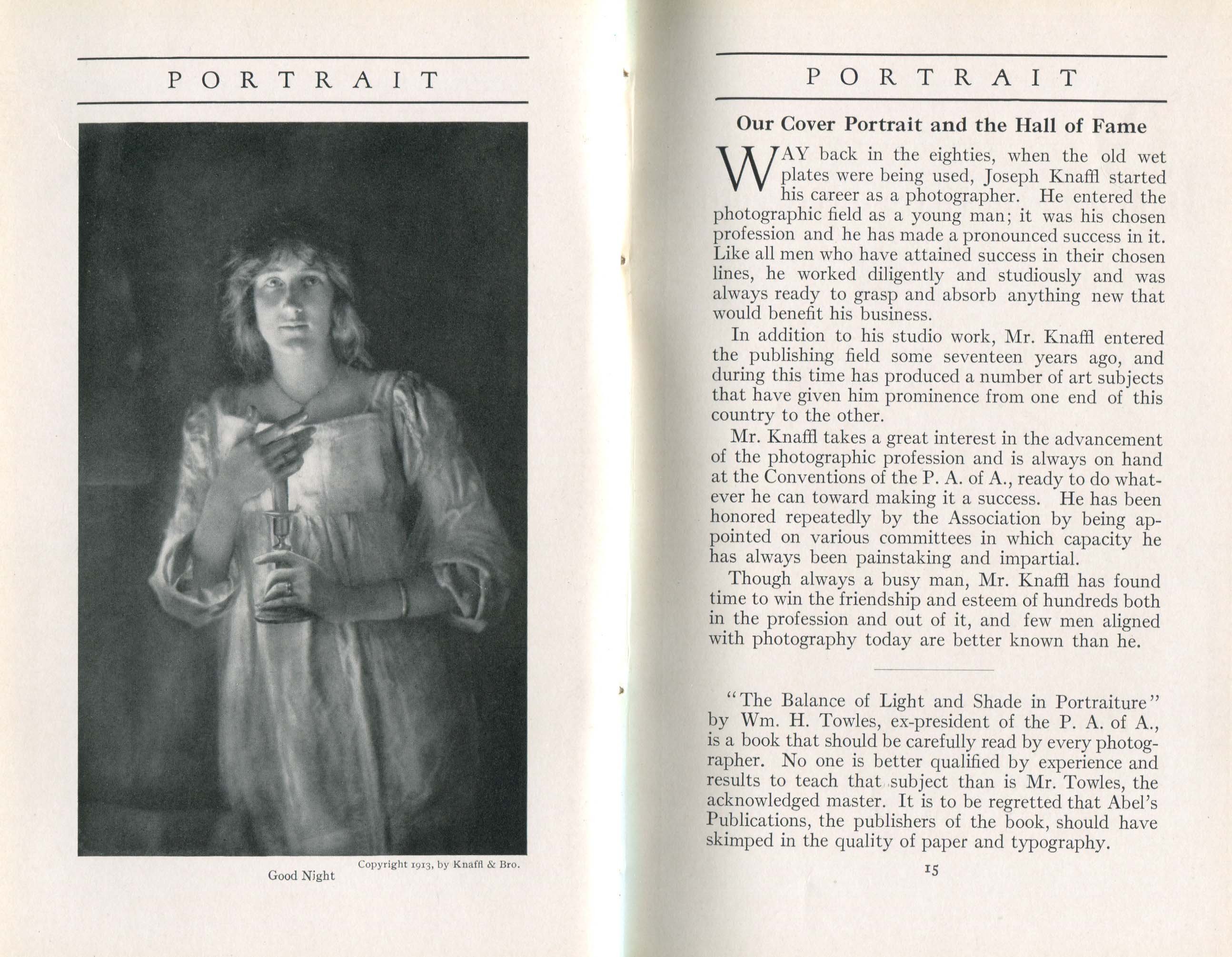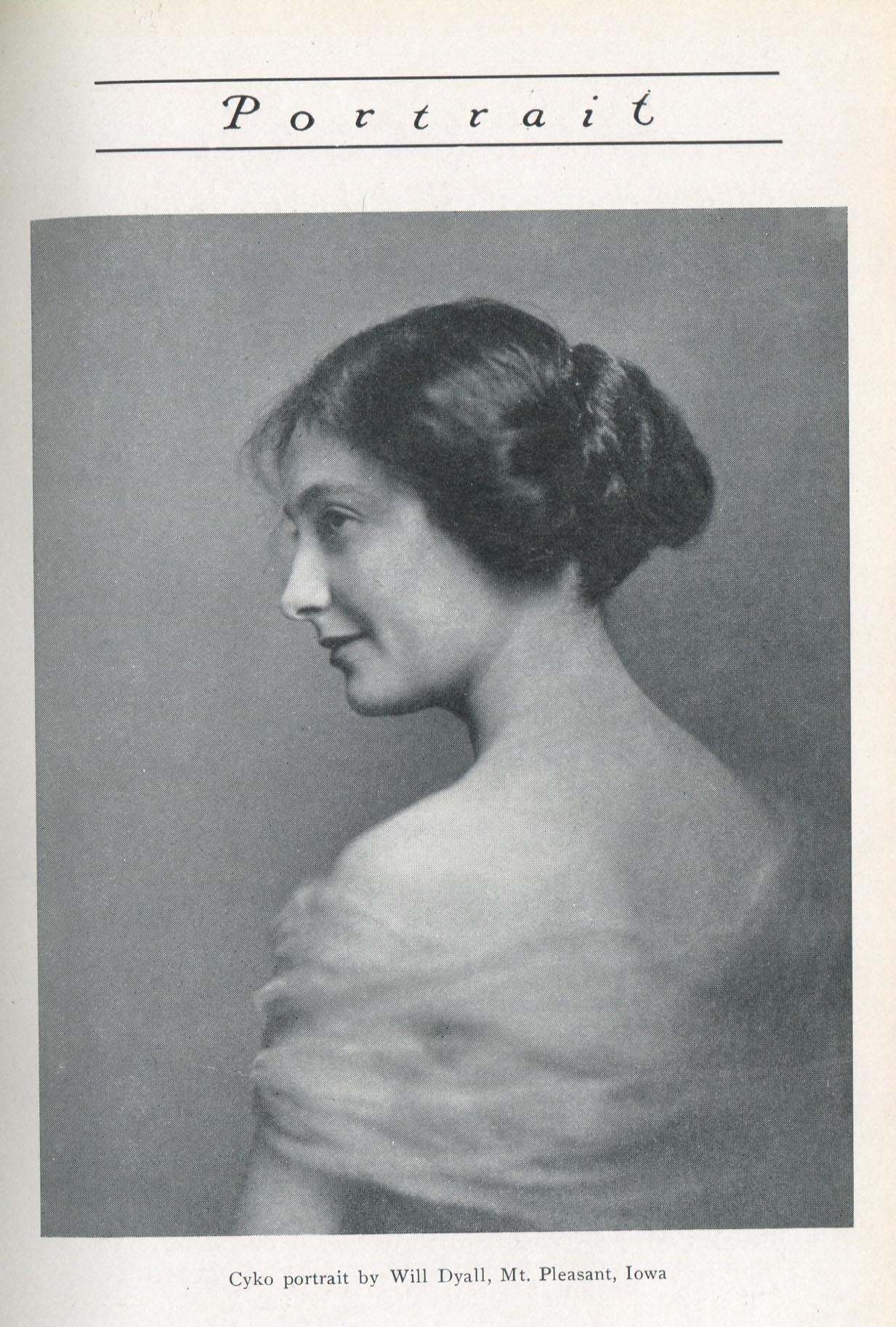 According to its masthead, Portrait, a monthly journal published by the ANSCO Company in Binghamton, New York, from 1909 to 1921, was "a magazine devoted to art-in-portraiture, also profit-in-photography and committed to a `square deal.'" Portrait coincided with the golden age of commercial portraiture, when the influence of amateur art photography combined with market demand to encourage the development of studios where individuals could obtain portraits that went well beyond mere likenesses. In keeping with the artistic aspirations of these photographers, such portraits were printed using controlled processes such as gum bichromate or on commercially available papers, such as ANSCO’s Cyko, for which several variants, including a `linen' surface, was available. Cyko, especially when toned, could resemble gum or platinum prints and was much faster to process.