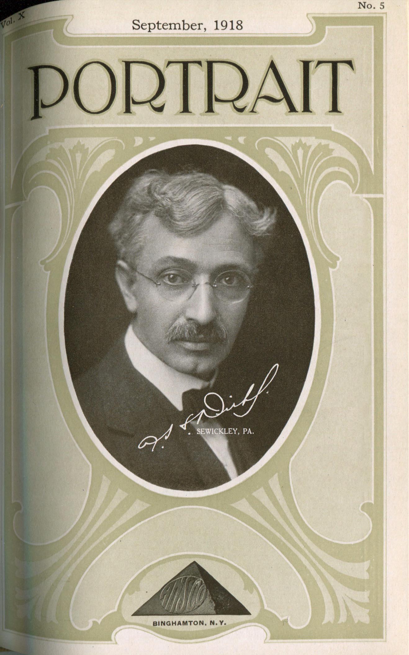 Disinger (Foster) & Adams (Ralph D.). Binghamton NY – January 1918 Cover Profile and portrait by Adams Portrait by Disinger