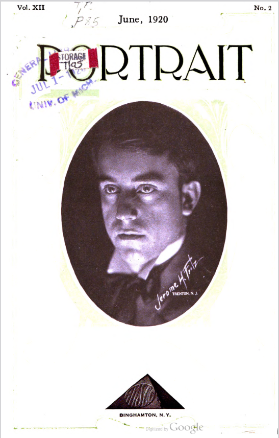 Fritz, Jerome H. Trenton NJ – June 1920 Cover Profile Portrait of woman