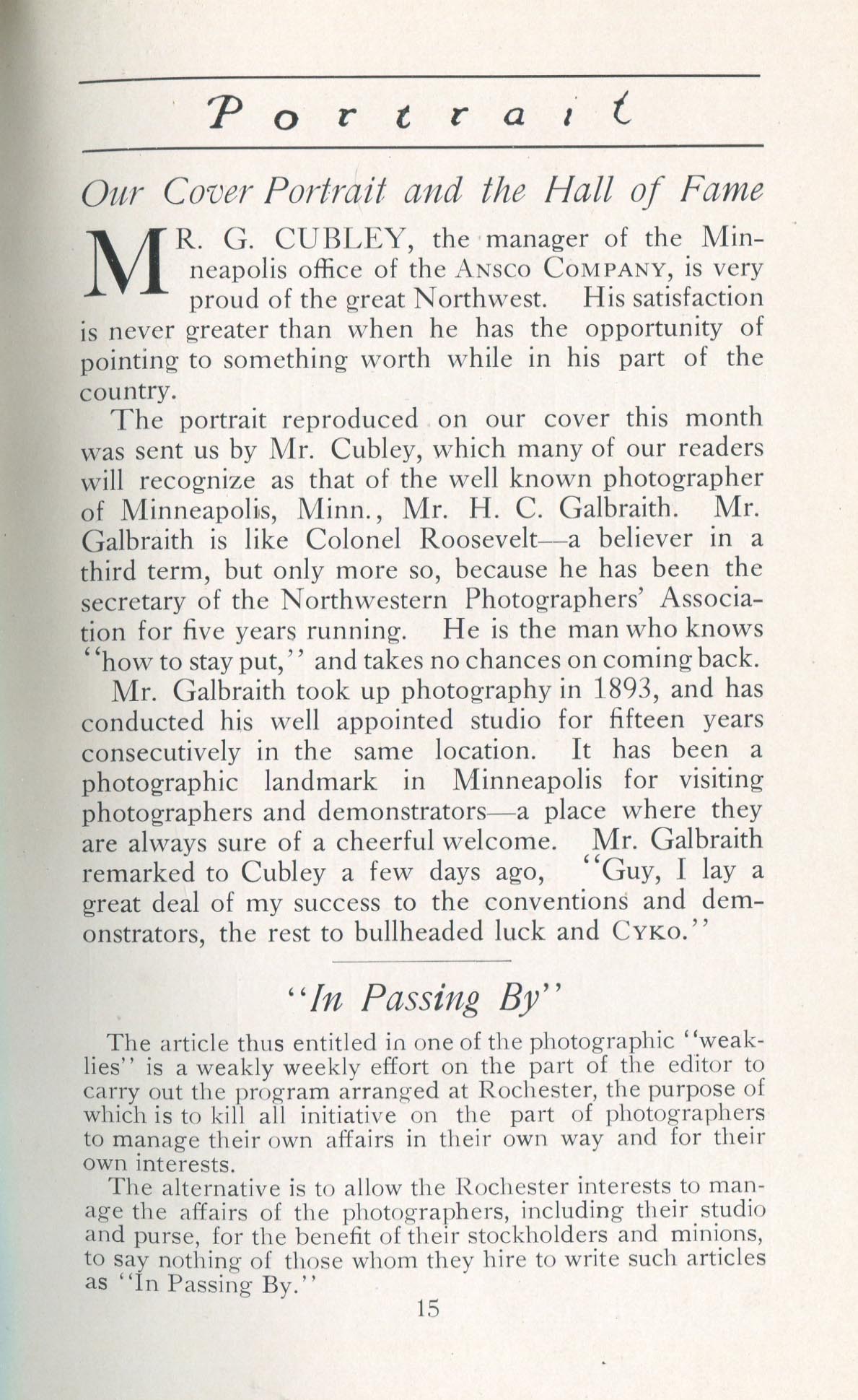 Gailbraith, H.C. Minneapolis MN – June 1912 Cover Profile