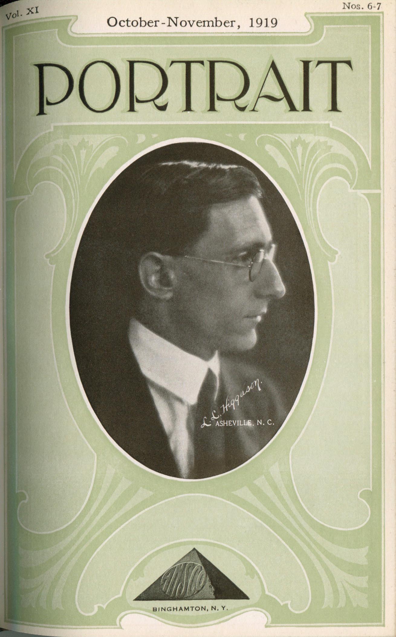 Higgason, L.L. Asheville NC – October 1919 Cover Profile and portrait of soldier