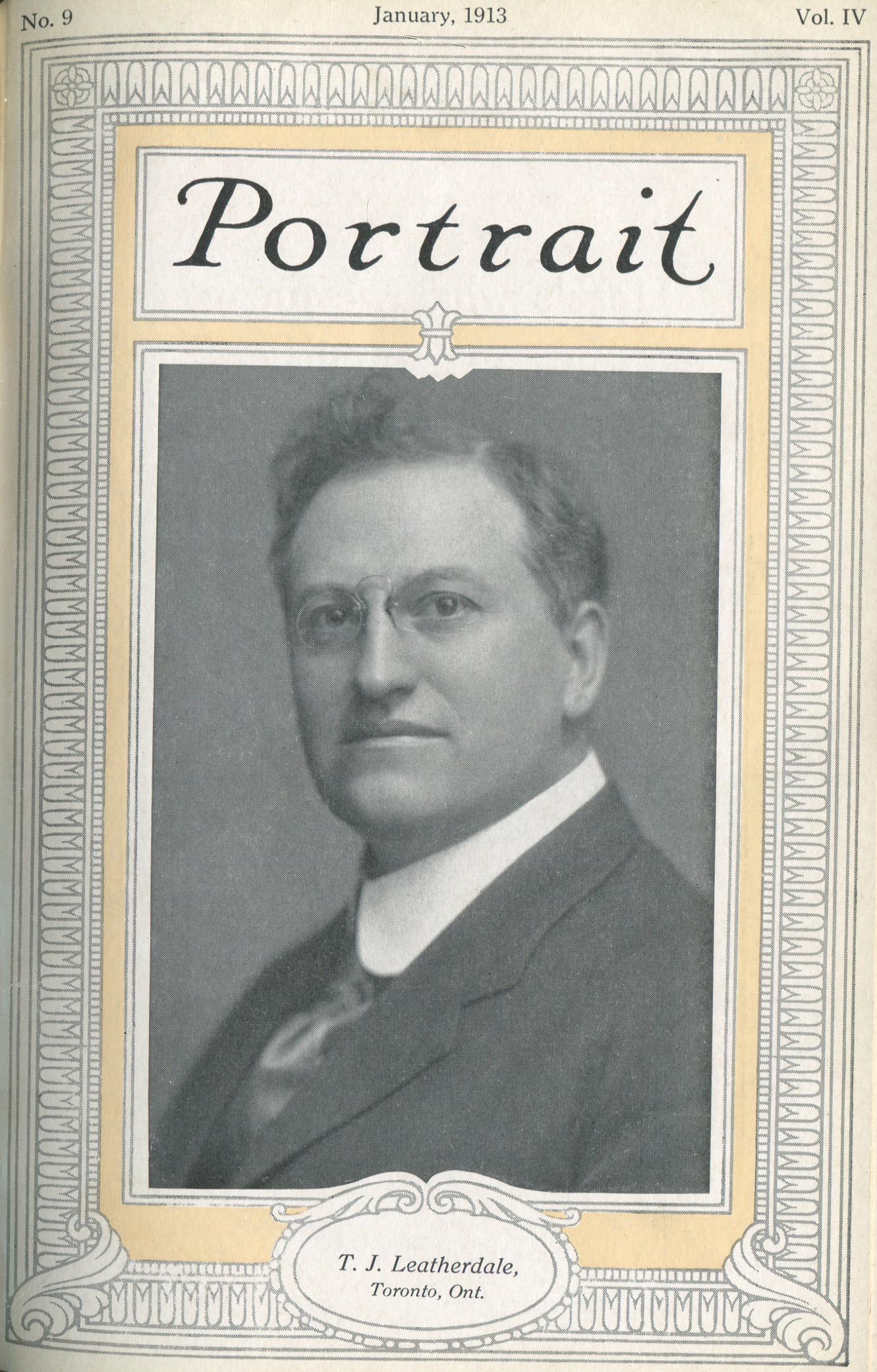 Leatherdale, T.J. Toronto Ontario Canada – January 1913 Cover Profile
