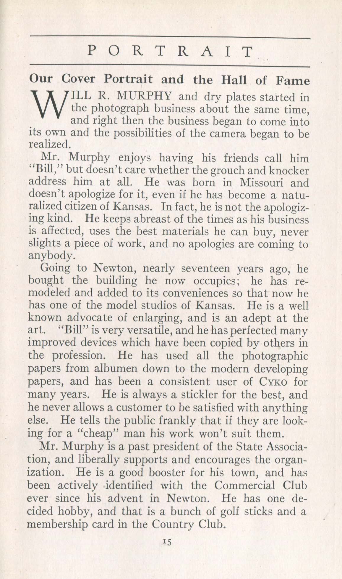 Murphy, Will R. Newton KS – April 1917 Cover Profile