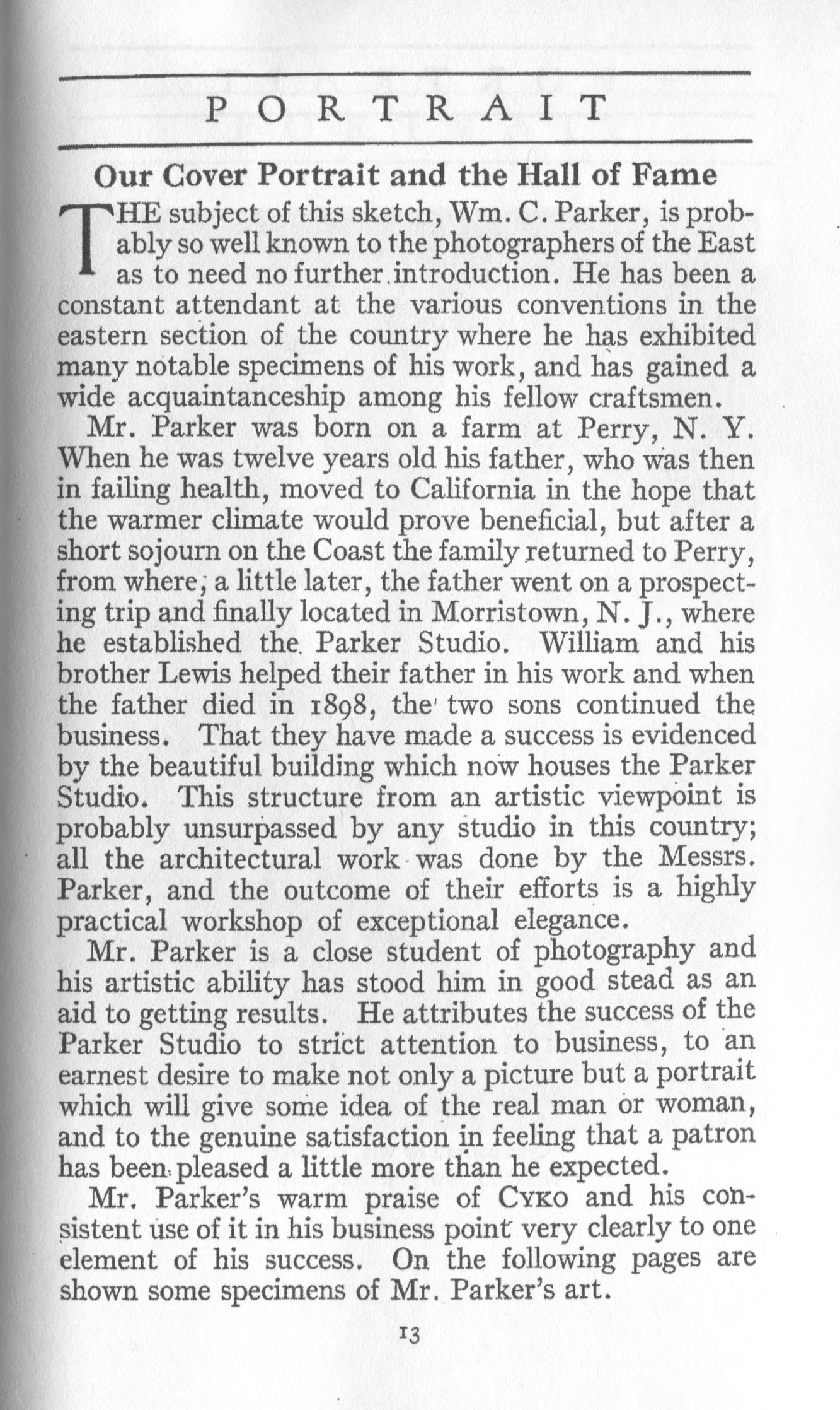 Parker, William C. Morristown NJ – February 1919 Cover Profile Parker portraits of man and chile