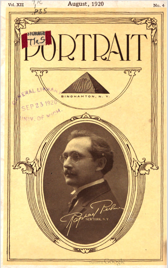 Peterson, A.K. Hartford CT – July 1920 Cover Portrait of man