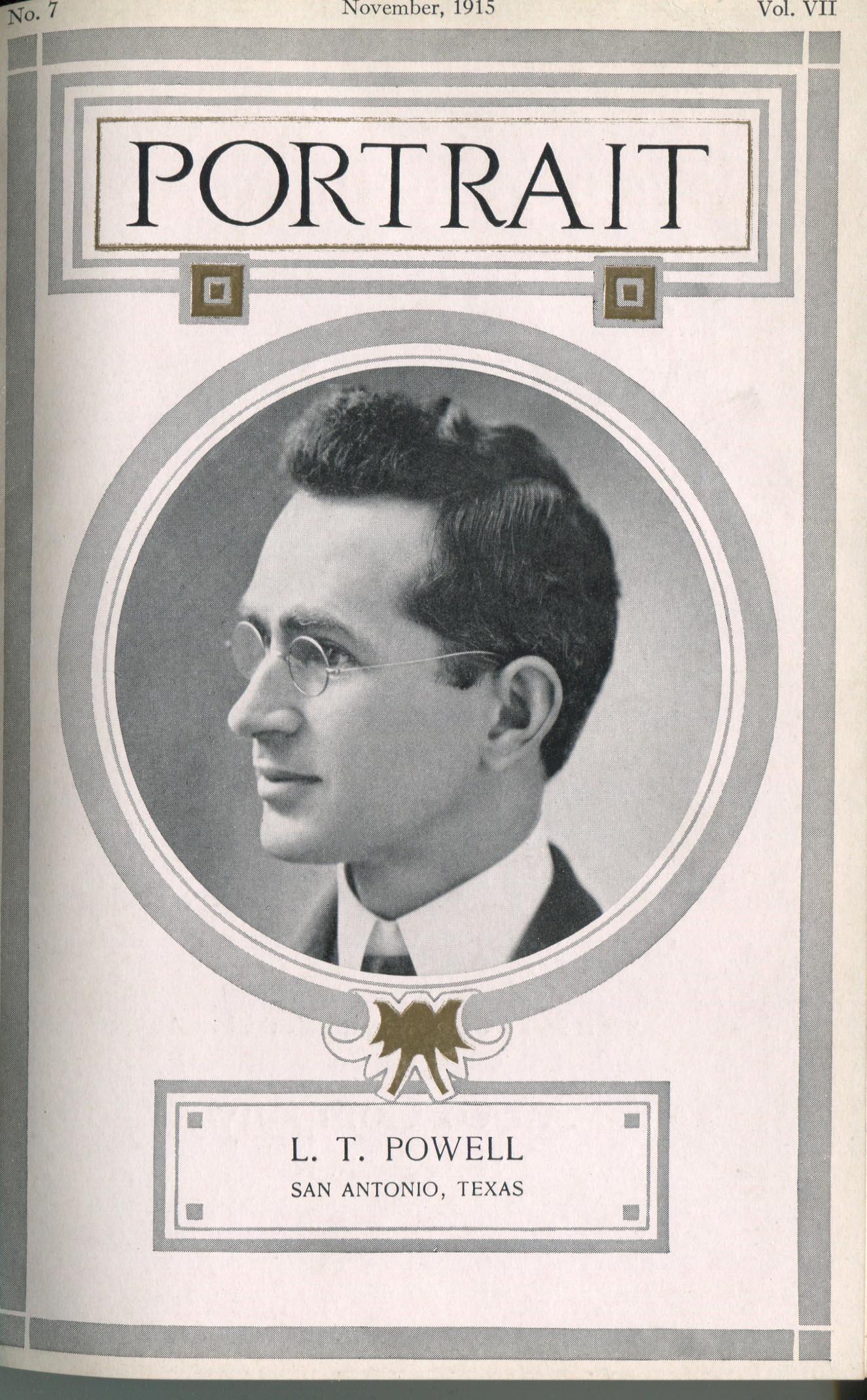 Powell, L.T. San Antonio TX – November 1915 Cover Profile and portrait of actor William A. Howell
