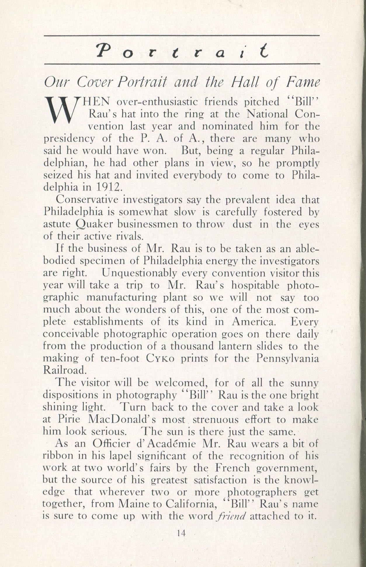 Rau, William H. Philadelphia PA – May 1912 Cover Profile