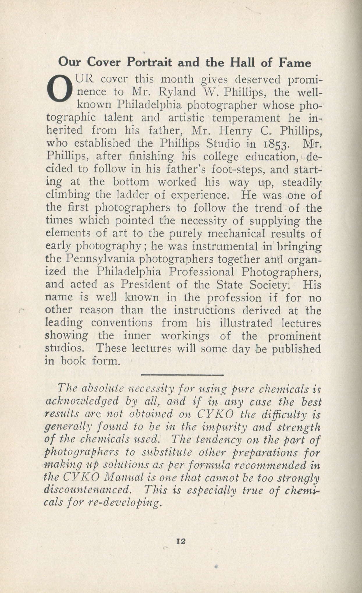 Phillips, Ryland W. Philadelphia PA – December 1909 Cover Profile