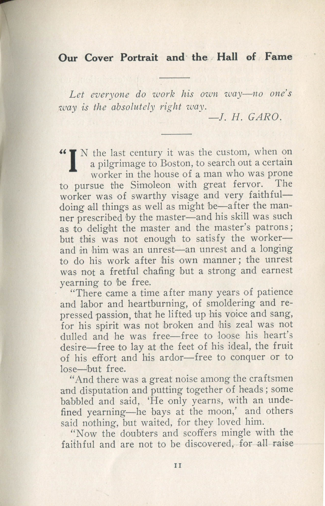 Garo, John H. Boston MA – September 1909 Cover Profile Profile, continued