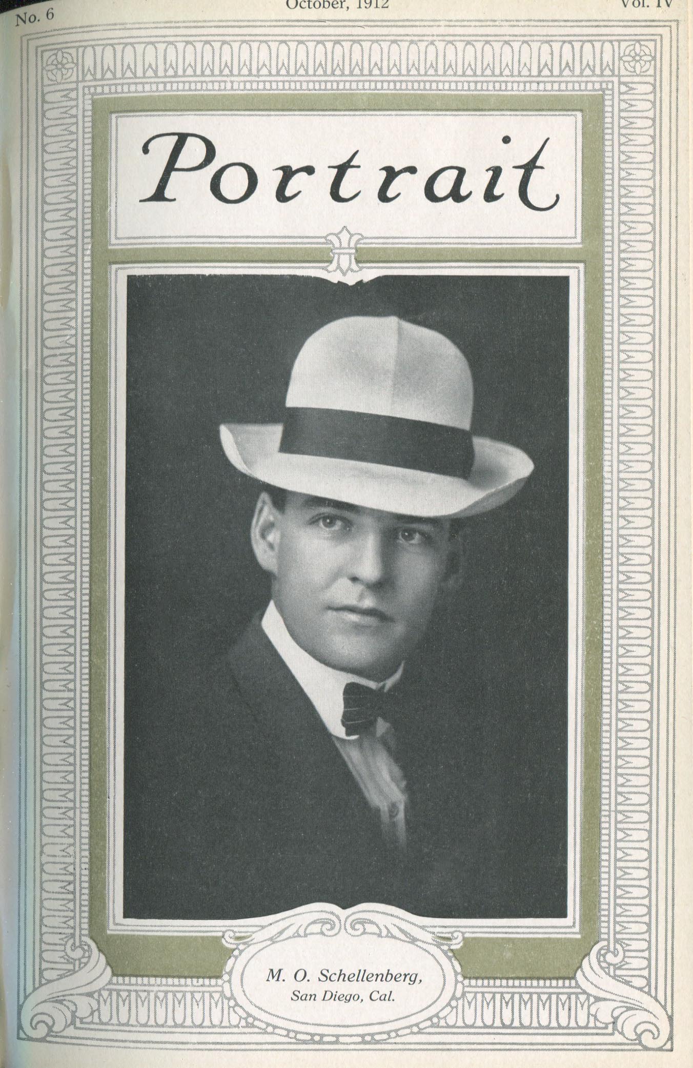 Schellenberg, M.O. San Diego CA – October 1912 Cover Profile