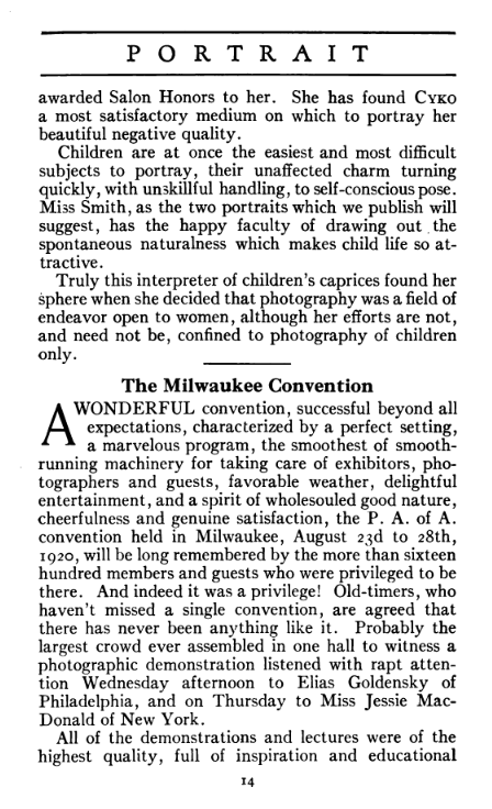 Some prominent North American portrait photographers of this era, such as Elias Goldensky, were not featured in Portrait, even though they used Cyko paper. Nevertheless, Portrait is a potentially useful source concerning numerous photographers and other information pertaining to the practice of professional photography from 1909 to 1921.