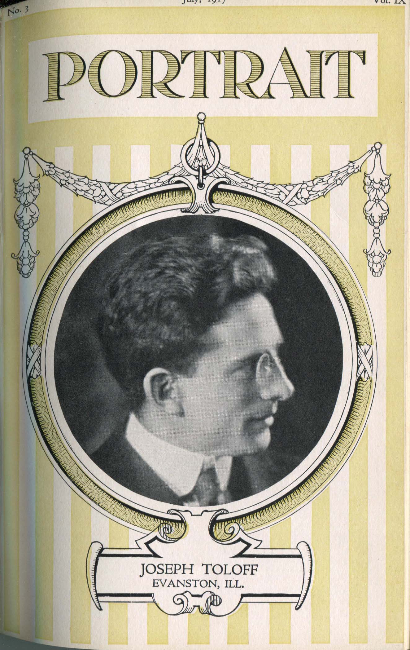 Toloff, Joseph. Evanston IL – July 1917 Cover Profile and portrait of woman